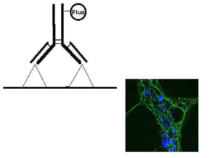 Autres moyens microscopiques • • L'immunohistochimie: de plus en plus pratiquée à l'heure actuelle, soit en lumière ordinaire, soit en fluorescence, est capable de détecter une substance ou un constituant par mise en évidence indirecte d'un anticorps spécifique (anticorps monoclonaux) dirigé contre cette structure ou cette substance. • Les anticorps (Ac) sont couplés à un marqueur fluorescent ou enzymatique (révélation).