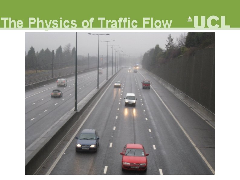 Overview • Queuing Theory • Macroscopic Flow Theory • Kinetic Theory • Cellular Automata • Three Phase Theory • Vehicle Following Model • Bifurcations • Computer Model • Mechanical Model • Data Analysis • Conclusions