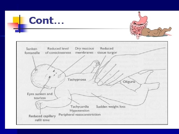 Nursing intervention: The aim of nursing intervention is: n To hydrate the infant. n To feed the infant. n To deal with associated problems.