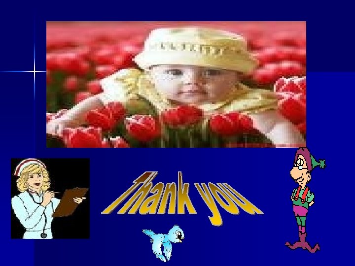 Medical treatment: n n n Treatment should be continued for one week after recovery prevent recurrence. Cleanliness and sterilization of the feeding bottles and teats. The infant's mouth is gently painted three times daily with 1% aqueous solution of gentian violet. This may be combined with nystatine, 100. 000 units by month, 3 – 4 times daily. Mother's nipple and areola painted with nystatine ointment between meals. Prognosis: n Generally very good, recovery occurs after (3 – 5) days.
