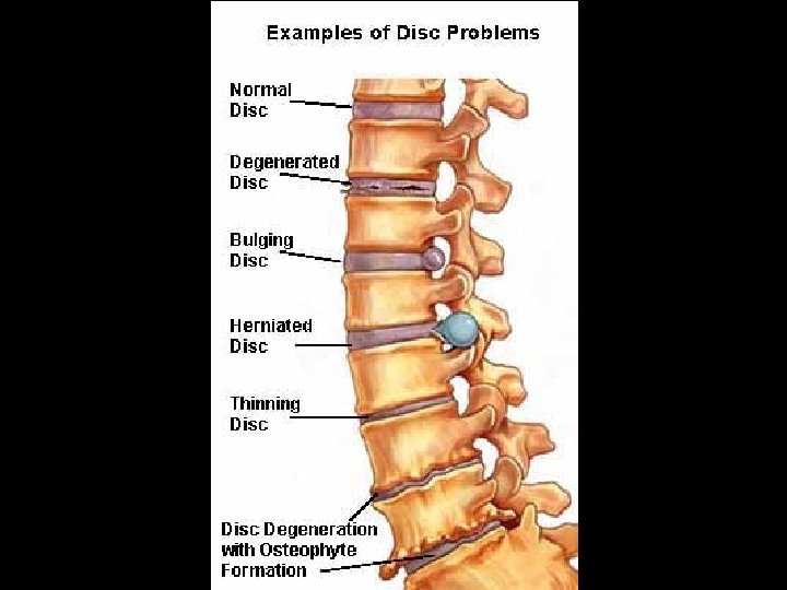 Causes of back pain Aging and Disease v Loss of muscle strength with aging. v “slip disc” v Osteoarthritis, a form of aging arthritis, can cause back pain.