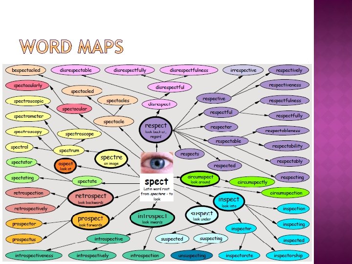 Choose a root word from the list below and create a word map adding suffixes and prefixes. � � spect – late use act If you are uncertain whether the prefix you have used is correct, check the word in a dictionary when you proof-read your writing!