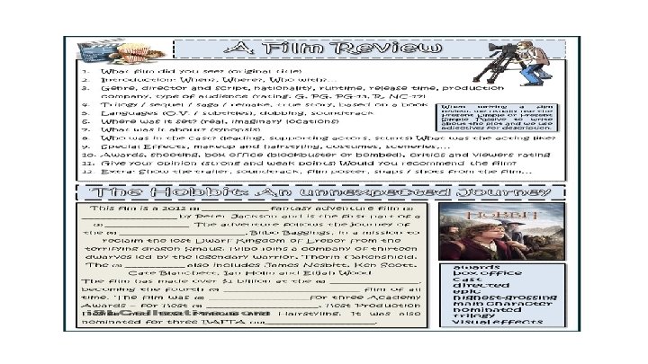 My movie: What genre is the movie? …………………………………… Where is the movie set? ……………………………………. . What famous actors where in the movie? ……………………………………. Why do you like the movie? ……………………………………. .