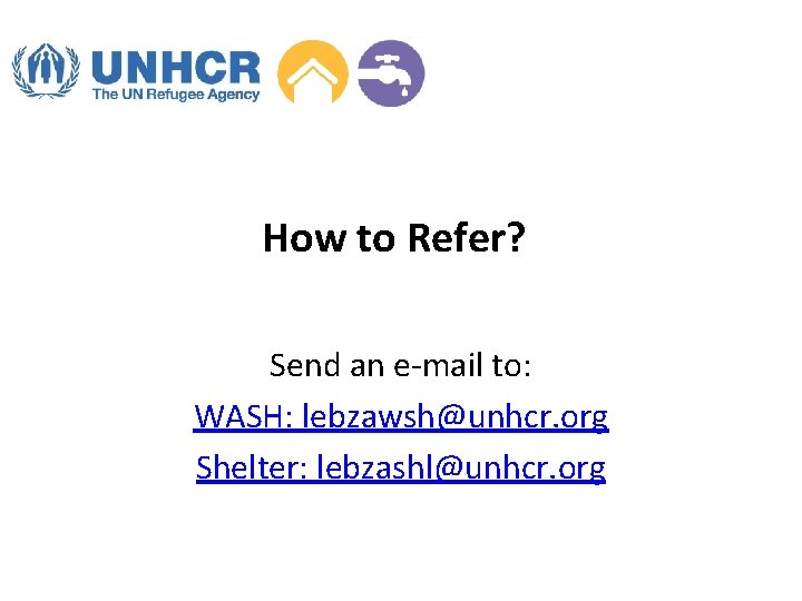 How to Refer? Send an e-mail to: WASH: lebzawsh@unhcr. org Shelter: lebzashl@unhcr. org