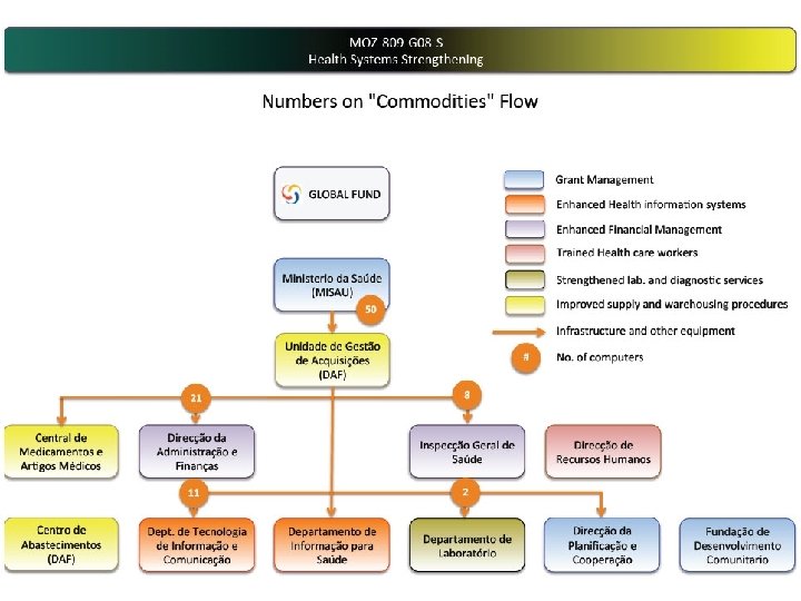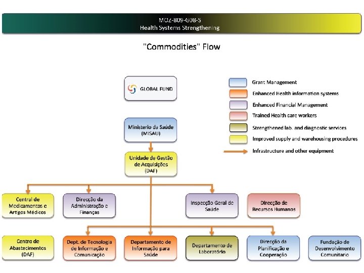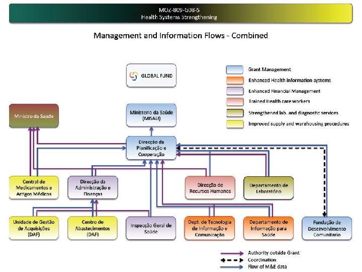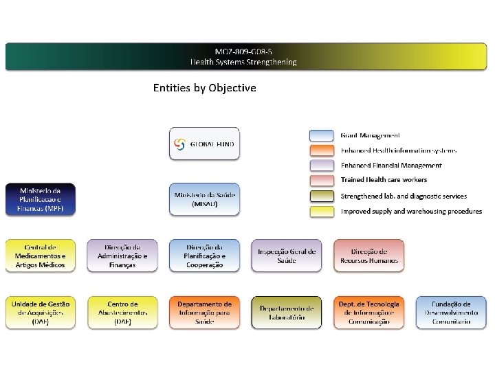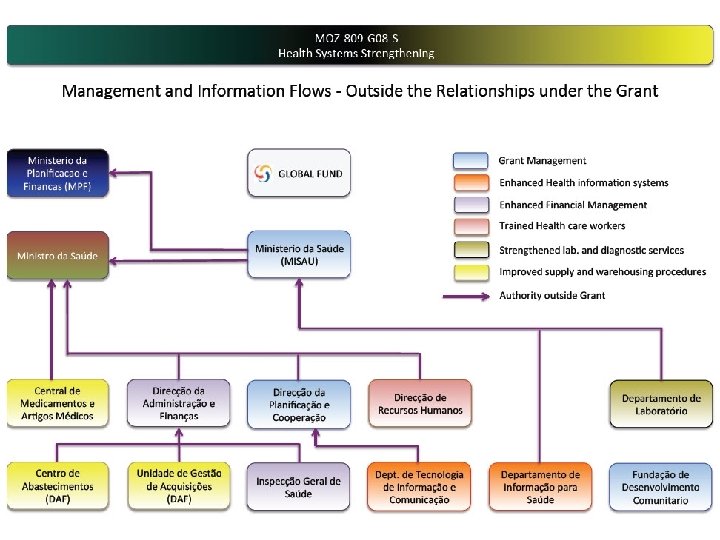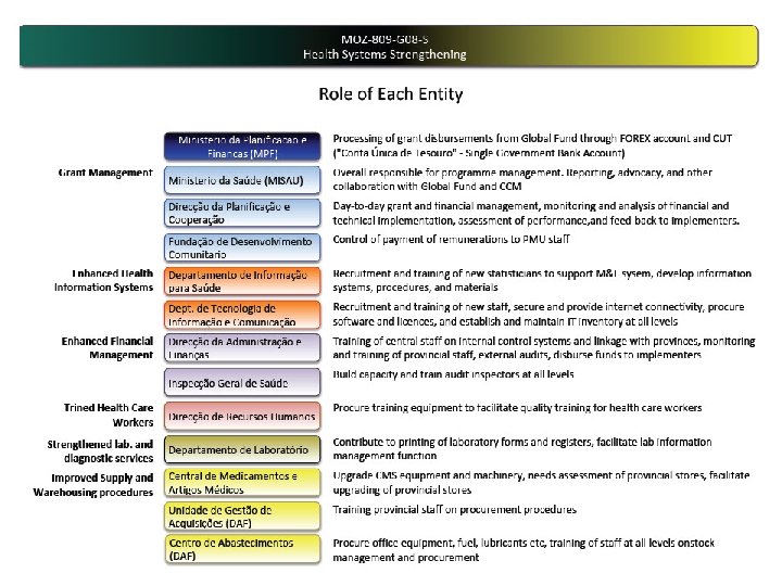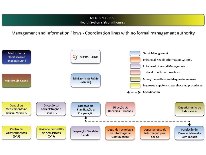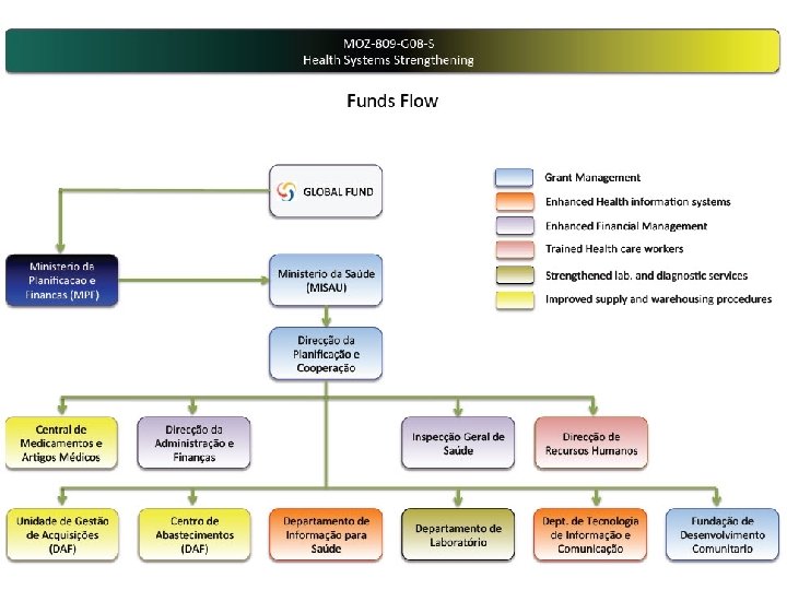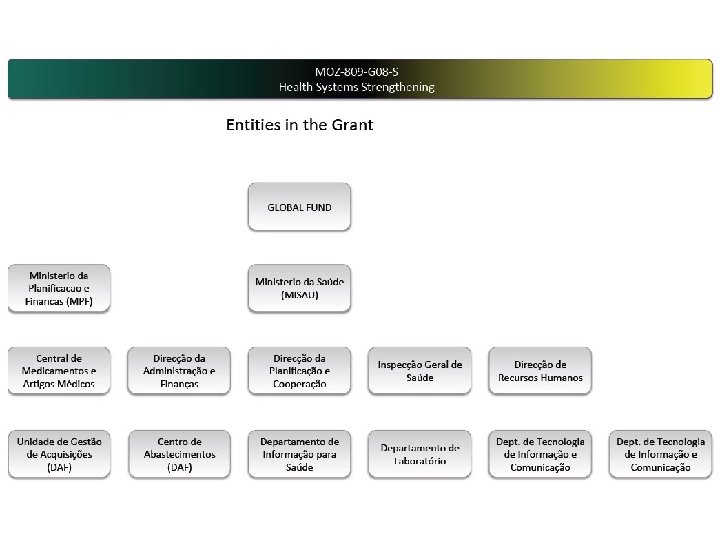 SAF-H-NDOH: Grant implementation map 07/07/2014 Global Fund SA Reserve Bank Treasury PMU (PR) 100% / 8. 7% Planned disbursement as a % of total budget / Actual disbursement as a % of total budget NDo. H (PR) 1. 2% / 0. 0% 1. 5% / 0. 4% 30. 3% / 2. 9% 1. 1% / 0. 3% 0. 9% / 0. 1% 62. 5% / 4. 5% DSD (e. SR) M&E (i. SR) TB Control (i. SR) HIV & AIDS (i. SR) OCC Health (i. SSR) AMU/CPU (i. SR) ? %/ ? % Procure ARV DHIS (HIV) Provinces 6. 8% / 0. 0% NHLS (e. SSR) 7. 8% / 0. 0% Jhpiego (e. SSR) 7. 1% / 0. 4% Aurum (e. SSR) 2. 8% / 0. 0% Right to Care (e. SSR) 3. 4% / 0. 0% TB HIV Care (e. SSR) DHIS (HIV) District e. TR. net (TB) DHIS(HIV) Sub - Districts DHIS (HIV) e. TR. net (TB) & DHIS (HIV Health Facilities Procure Lab Prods Store and Distribute HP DDC - Imperial Health 3 x CCMDD ? %/ ? % Top-up only ? %/ ? % NHLS/Facility Labs Designated GF ART sites e. SR: external SR, e. SSR: external SSR, i. SR: internal SR, i. SSR: internal SSR, DDC: Domestic Distribution Centre, CCMDD: Critical and Chronic medicines Dispensing and Distribution, NHLS: National Health Laboratory Services