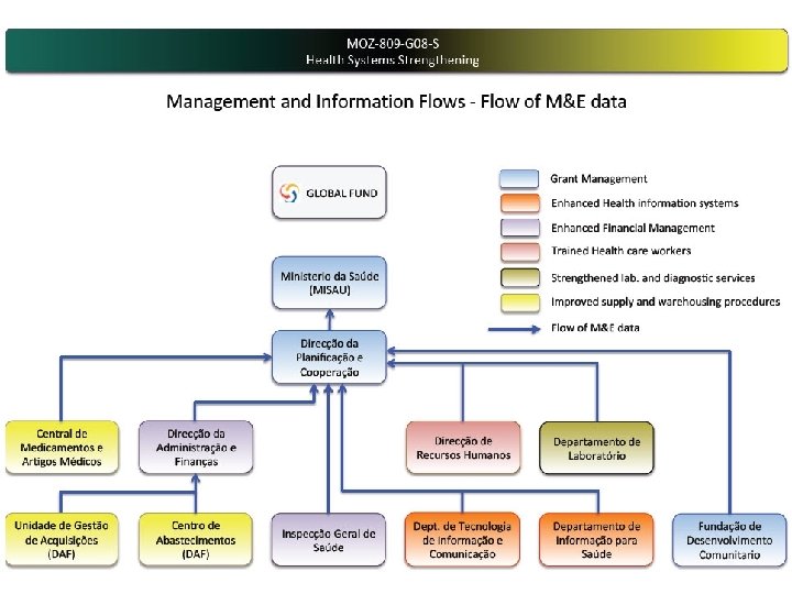 Bonnes pratiques 1. Utiliser le processus standard en 7 étapes 2. Garder la même disposition des entités sur la carte, sauf pour présenter une vue "particulière" 3. Clarifier les liens contractuels 4. Montrer le rôle de coordination – en aucun cas gestion - du CCM/Comité de Suivi Stratégique 5. Utiliser le jeu de symboles et couleurs du Fonds mondial 6. Si la cartographie représente plusieurs subventions, bien démontrer les liens entre elles (ex. cadre de performance unique)