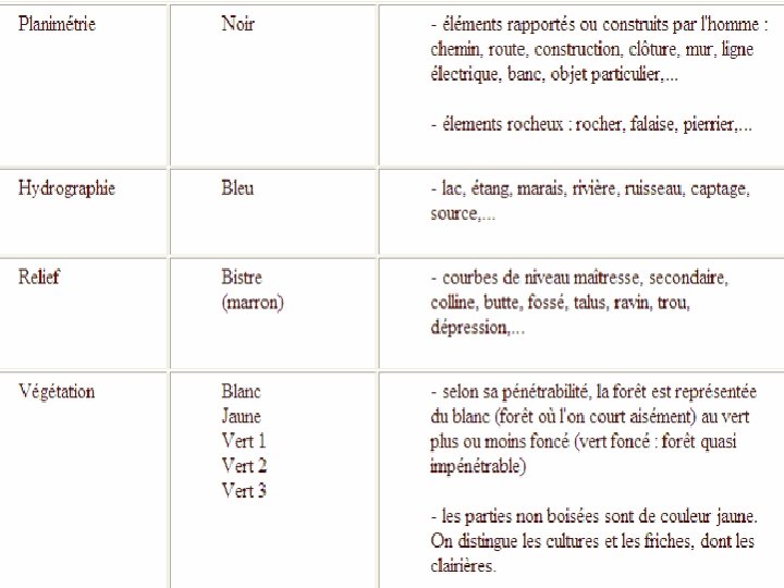 PLANIMÉTRIE Sur une carte de Course d'Orientation, on trouve des informations de nature différente : la planimétrie, l'hydrographie, le relief, la végétation.