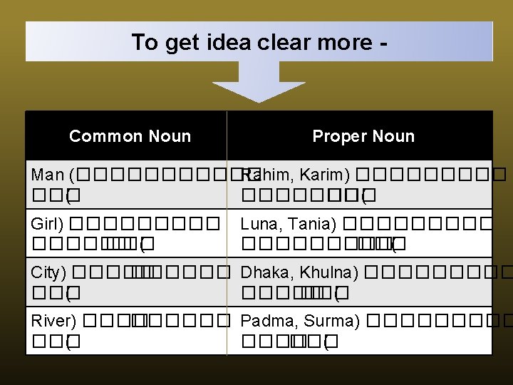Every general name of something like man or other thing is called common noun. Common Noun Common name of a group. Kazi Nazrul Islam is a great poet. Common Noun
