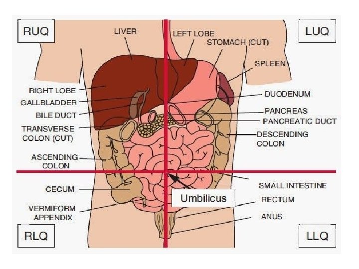 Quadrants of abdomen • • Right upper Left upper Right lower Left lower
