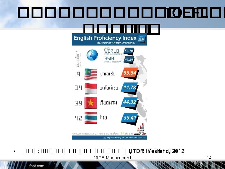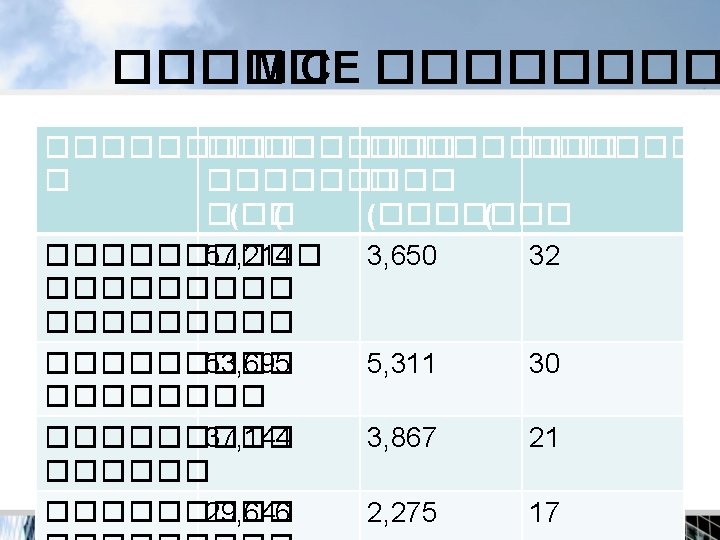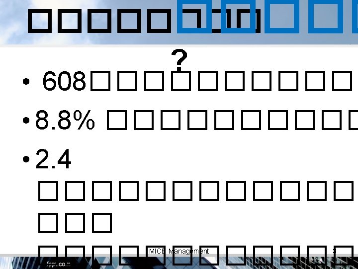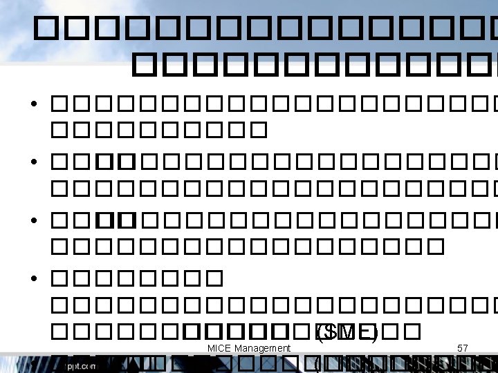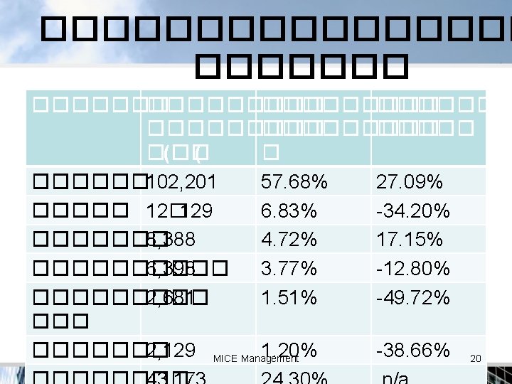 MICE Thailand MI = E= 41. 8 21. 0 % % C= 37. 2% MICE Management 30