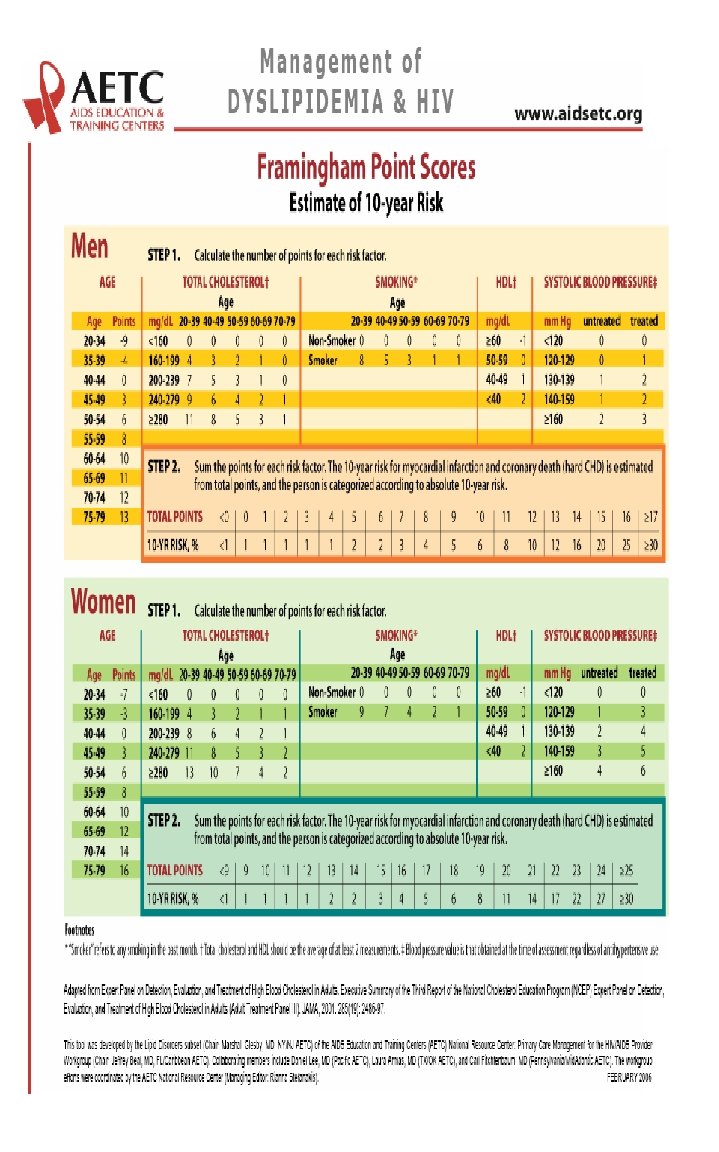 Tools l Objective: To provide a framework for assessing and managing dyslipidemia in HIV-infected patients. l Types: l l l Patient Assessment Tool Patient Management Tool Support Tools: l l Framingham Risk calculation worksheet Patient education tool: Nutrition fact sheet from APLA