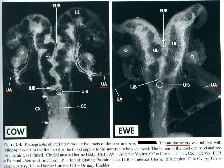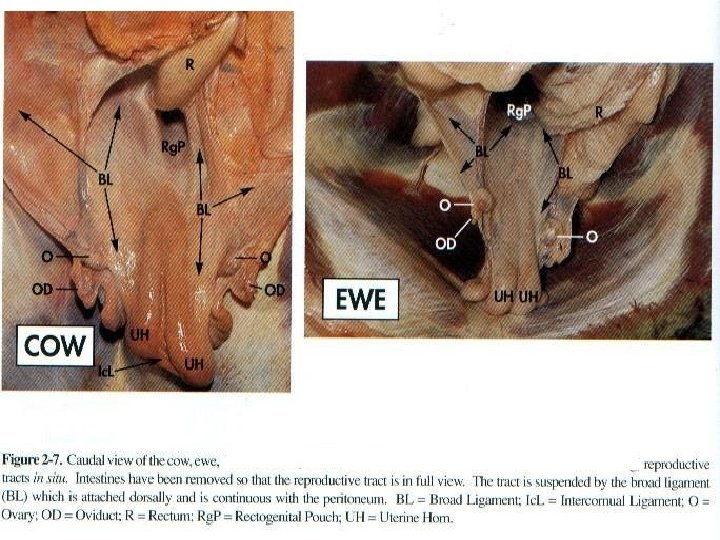 Blood Supply n Veins : 1. Left Ovarian v. : enter the left renal v. 2. Right Ovarian v. : enter the caudal vena cava. 3. Uterine v. 4. Vaginal v. n The close relation between the ovarian artery and ovarian vein provide a means of the countercurrent transfer of Prostaglandin from veins blood to arterial blood. (in ruminant and sow)