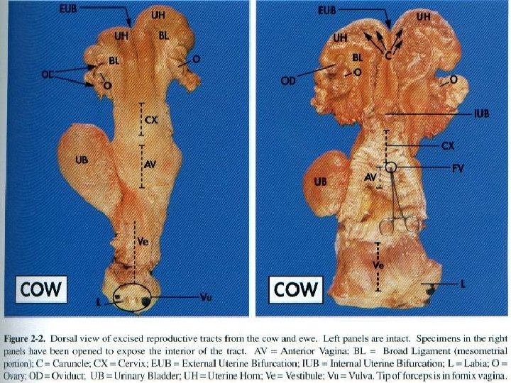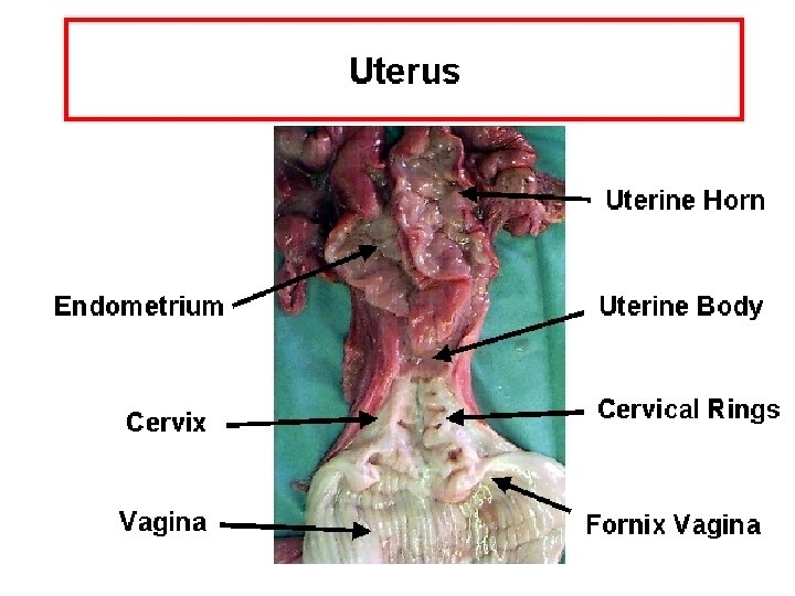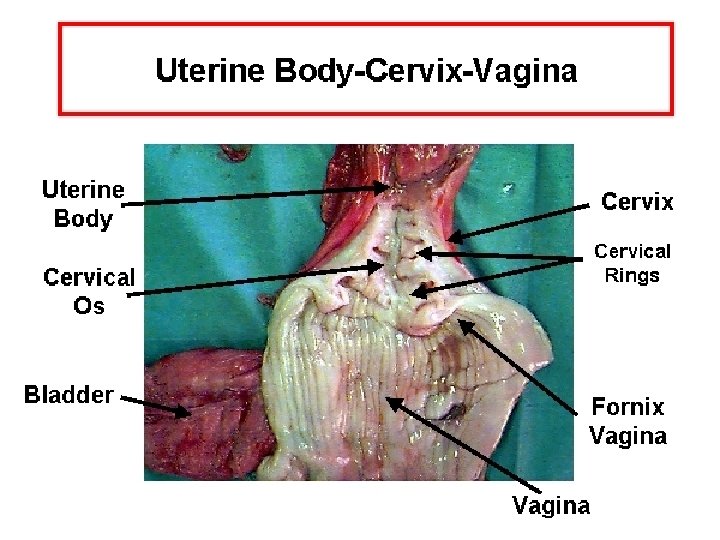 Cervix n n The lumen of cervix closed by the interlocking of irregular surface projection (Annular rings). Annular rings n n cow: 3 -4 rings. doe: 5 rings. ewe: 6 -7 rings. Fornix: blind sac formed by cervix protruding into vagina.