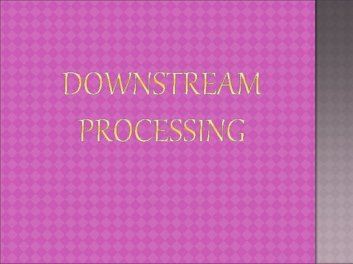 INTRODUCTION • The various processes used for the actual recovery of useful products from fermentation or any other process together constitute ‘downstream processing’ • Mainly employed for isolation and purification of biomolecules It Can be divided into following stages: 1)Separation of particles 2)Disintegration of cells 3)Extraction 4)Concentration 5)Purification 6)Drying •