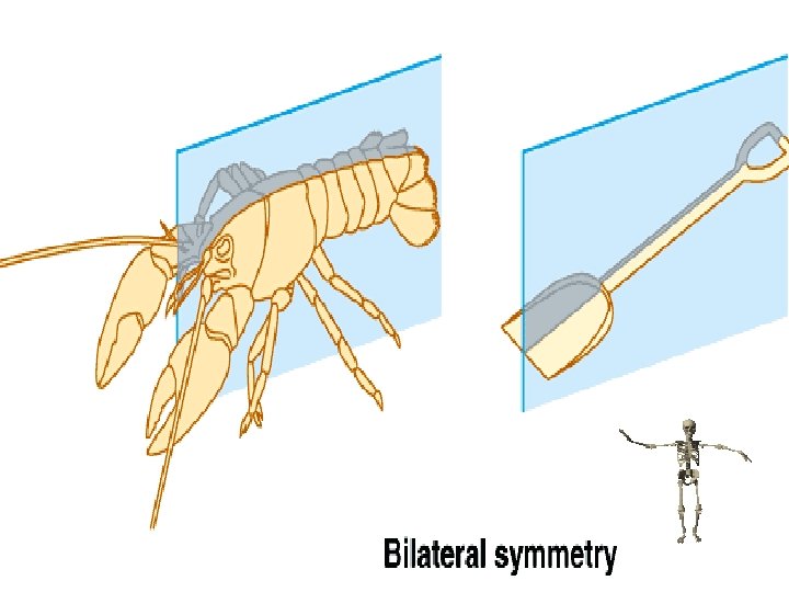 Body Symmetry • Bilateral symmetry occurs when animals can be divided into equal halves along a single plane • Organisms will have right and left sides that are mirror images of each other • More complex type of symmetry