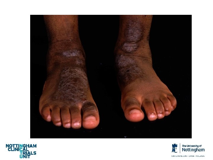 Assess severity of 4 key signs in each body region 1. 2. 3. 4. Erythema (redness) Oedema / papulation (swelling and bumpiness) Excoriation (scratch marks) Lichenification (“leatheriness”) Score the degree of severity of each sign for each body region separately 0 None 1 Mild 2 Moderate 3 Severe • Take an average of the severity across the whole body region • Half points may be used e. g. 2. 5 • Remember 2 limbs = one body region • Palpation may be useful in assessing oedema/papulation as well as lichenification