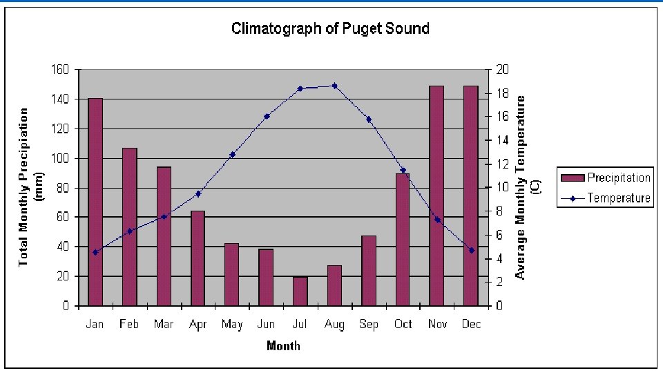 What is a climatogram? n A graph that shows a rough approximation of the annual climate pattern of a region • Average Monthly Precipitation • Average Monthly Temperature