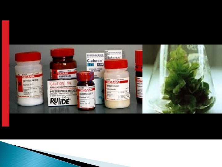 a p p l i c a t i o n s Agriculture Plant breeding to improve resistance to pests, diseases, drought and salt conditions Mass propagation of plant clones Bioinsecticide development modification of plants to improve nutritional and processing characteristics Chemical Industry Production of bulk chemicals and solvents such as ethanol, citric acid, acetone and butanol Synthesis of fine specialty chemicals such as enzymes, amino acids, alkaloids and antibiotics