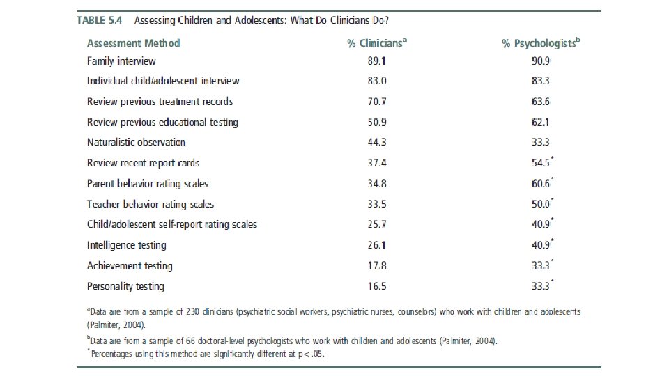 Integrating assessment data • Case formulation (from course book, p. 269) • Four major components 1. symptoms and problems 2. Events or stressors that led to the symptoms and problems 3. predisposing life events or stressors (i. e. , preexisting vulnerabilities) 4. A hypothesized mechanism that linked the first four components together to offer an explanation for the development and maintenance of the problems and symptoms.