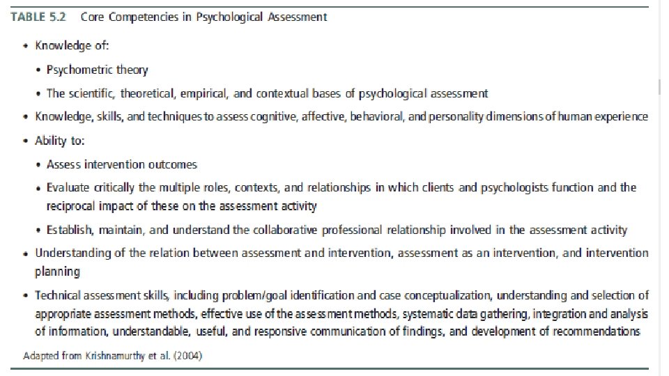 Aim of psychological assessment • Assessment‐Focused Services • initiated to answer basic questions about the person’s current functioning • provide recommendations for remediation of problems • provide an opinion on whether the person’s current level of functioning is substantially different from a prior level of functioning • E. g. , before a car accident or a work‐related injury • knowledge of the legal context in which their assessments will be used • E. g. , an insurance company or health management organization • Intervention‐Focused Services • the psychological assessment is not a stand‐alone service • a first step in providing an effective intervention