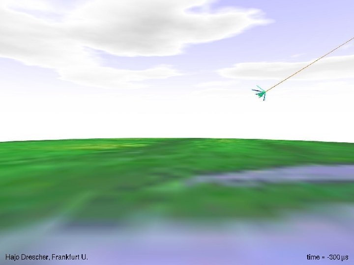 Cosmic rays at earth’s surface (secondaries) • Primaries interact at z 15 km, producing a shower of (mostly) short-lived particles. – e. g. pion ( ) lifetime is 2. 6 10 -8 s • The long-lived secondaries are: – e , photons: mostly absorbed – neutrinos ( ): practically invisible – muons ( ): =lifetime is 2. 2 10 -6 s • Without time dilation, muons would travel d c =660 m, with a survival fraction e-0. 66/15 10 -10 • Instead, for a 10 Ge. V muon, =10/0, 1=100, then mean distance is 66 km. (OK) • Detectable (vertical) flux is 1/cm 2/min • Simulated event: start. . . end • Movie • Sim tool