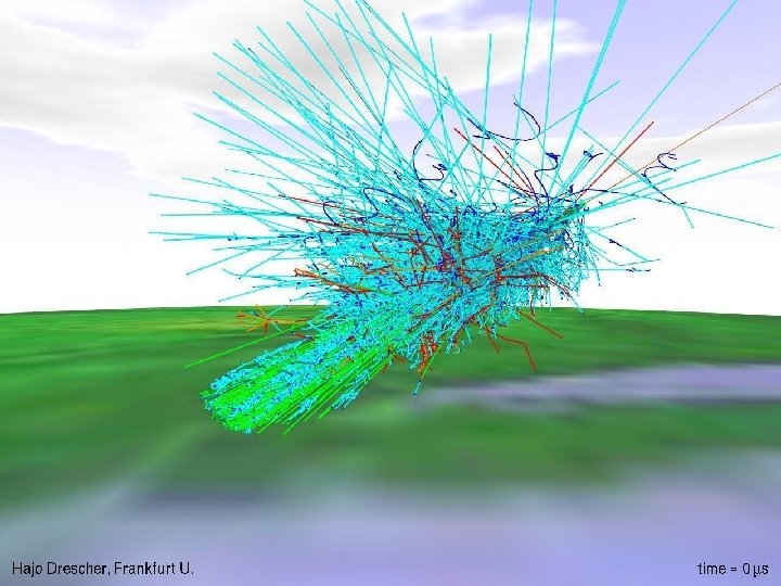 Extensive air showers 1938 • • Pierre Auger, who had positioned particle detectors high in the Alps, noticed that two detectors located many meters apart both signaled the arrival of particles at exactly the same time. Auger had discovered "extensive air showers, " showers of secondary subatomic particles caused by the collision of primary high-energy particles with air molecules. On the basis of his measurements, Auger concluded that he had observed showers with energies of 1015 e. V—ten million times higher than any known before. • Movie