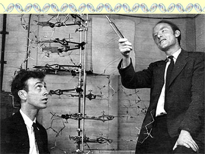Watson and Crick • Linus Pauling built a model of an alpha helix for protein structure and won the Nobel Prize. • Watson and Crick were inspired that Pauling used his imagination and molecular models to deduce this protein structure. • They believed if an eminent scientist such as Pauling could model a structure with little experimentation, then they might be able to do the same with DNA.