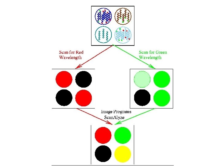 c. DNA microarrays • The ratio of the red and green fluorescence intensities for each spot is indicative of the relative abundance of the corresponding DNA probe in the two nucleic acid target samples.