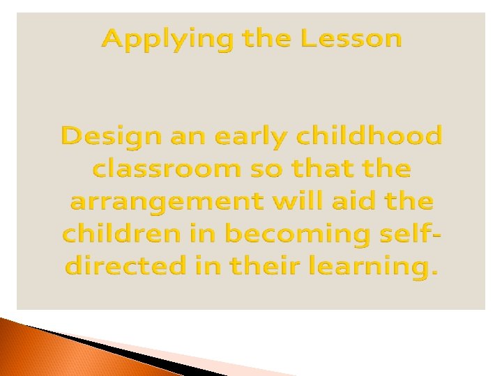 INTRODUCTION TO EARLY CHILDHOOD EDUCATION ET-ECE-11 Determine components of a well-organized, developmentally appropriate learning environment.