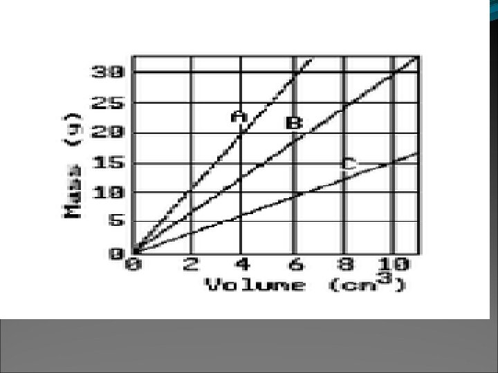 Learning Check What is the density (g/cm 3) of 48 g of a metal if the metal raises the level of water in a graduated cylinder from 25 m. L to 33 m. L? 1) 0. 2 g/ cm 3 2) 6 g/m 3 3) 252 g/cm 3 33 m. L 25 m. L