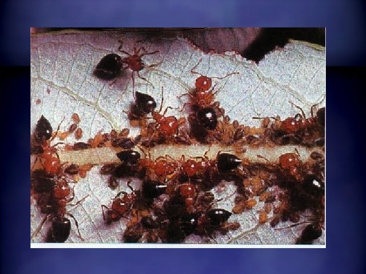 Ants and Aphids • Aphids provide honeydew to the ants, while the ants will take the aphids into their nests at night to protect them from predators and escort them back to a plant the next morning. • The ants collect the aphid's eggs and place them in their nests to survive the cold winter months!