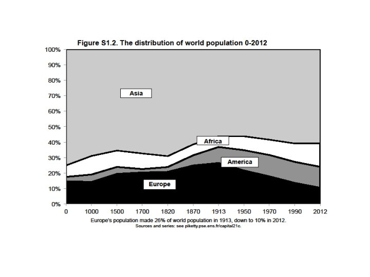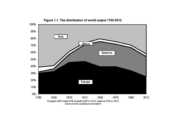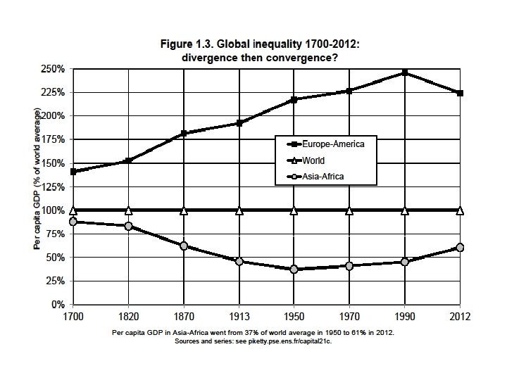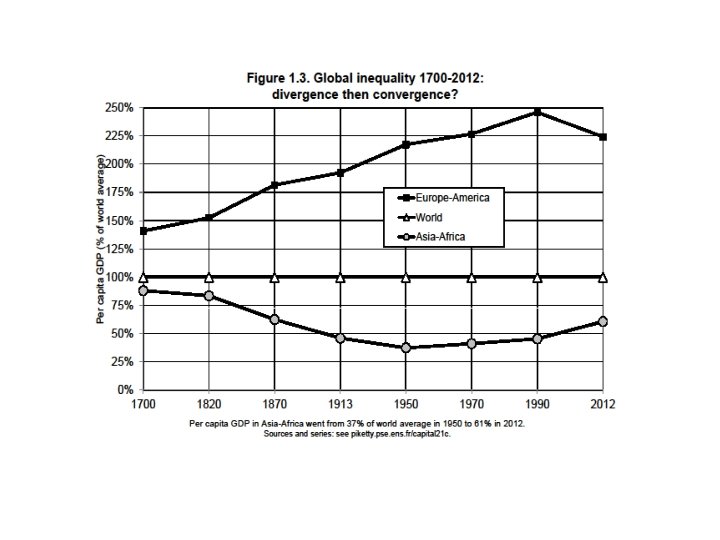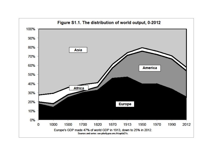 Introduction: three U-shaped curves • (1) Between-country income inequality 1700 -2015: divergence between Western and other countries during 19 c & until mid 20 c, convergence since 1980 -1990 (reduction of inequality) • (2) Within-country income inequality: in the US, income inequality rose since 1980 & is now back to the levels observed in early 20 c : i. e. about 50% of national income for the top 10% • (3) Capital/income ratio: in Europe & Japan, K/Y is almost back to the level observed in early 20 c : i. e. about 500 -600% for K/Y • These three evolutions are partly related (world wars, decolonization, end of communism, globalization), but also invole country specific mechanisms: (1) largely due to internal evolutions of emerging countries ; (2) mostly US trend; (3) mostly Europe and Japan (postwar recovery, demography) ; (2) & (3) could well happen together everywhere in the future - or not • One of the key objectives of this course is to better understand these long-run evolutions: how did rich countries get rich, and how do inequality, state formation & development interact?