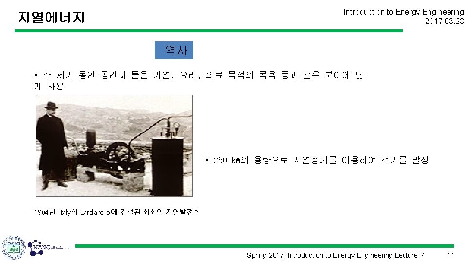 지열에너지 Introduction to Energy Engineering 2017. 03. 28 Spring 2017_Introduction to Energy Engineering Lecture-7 10