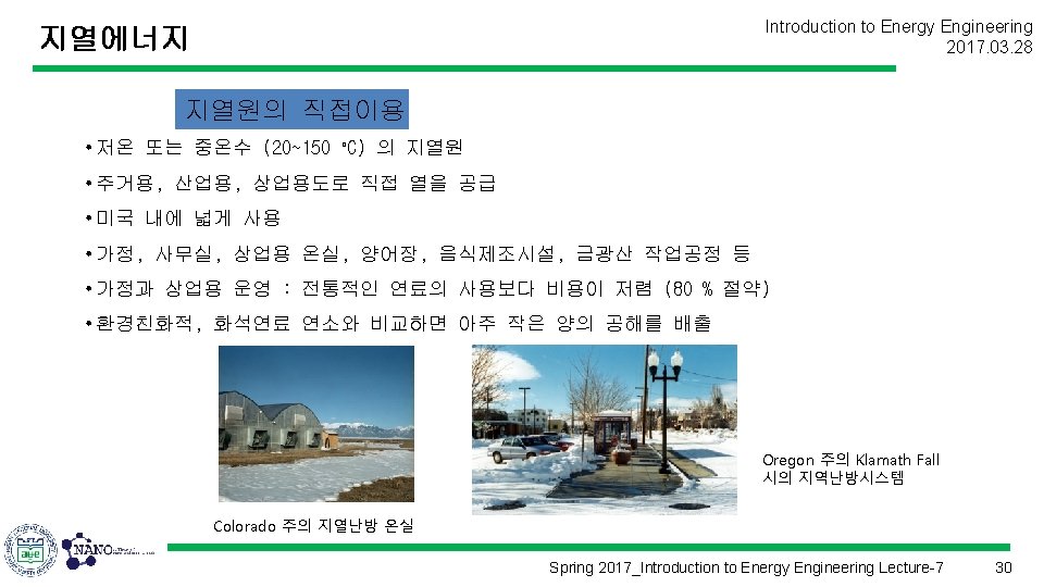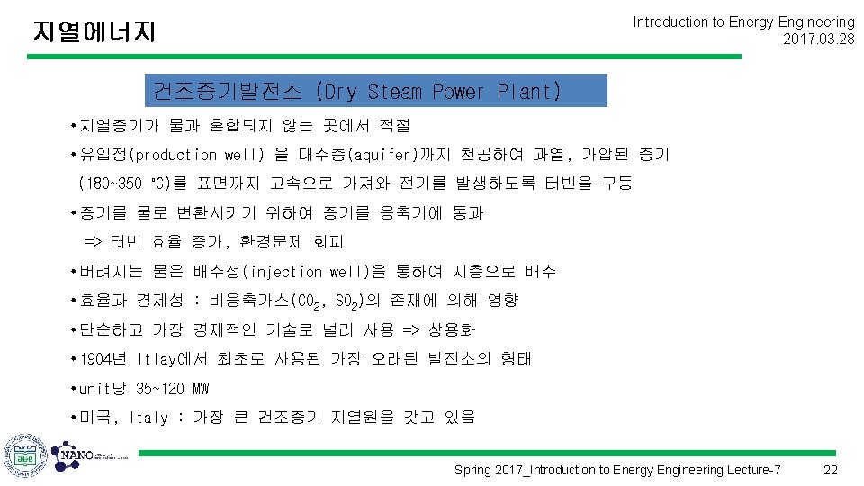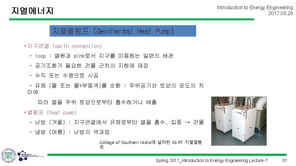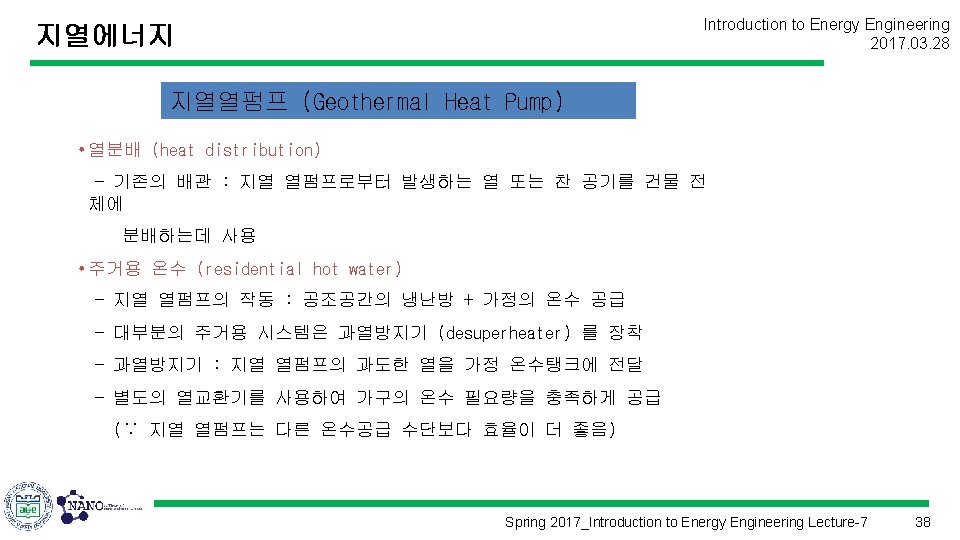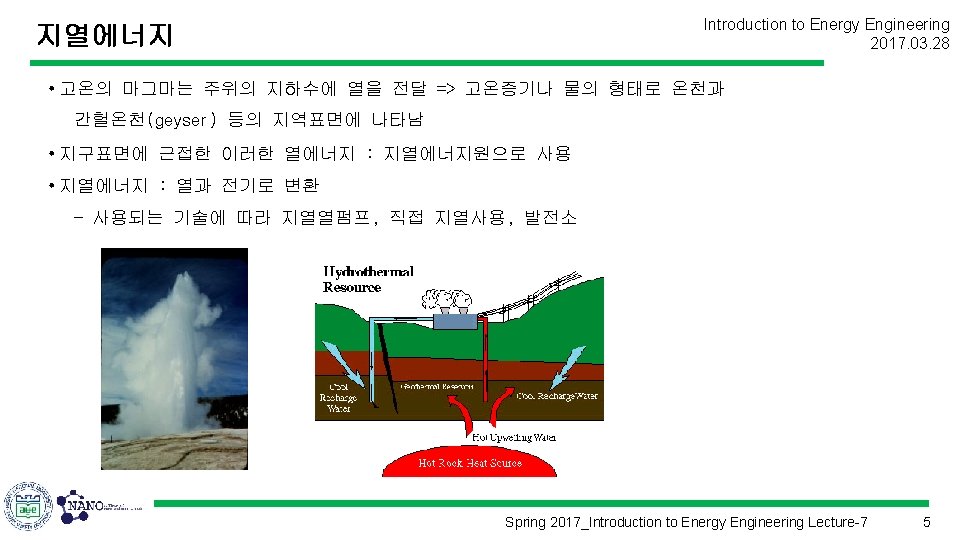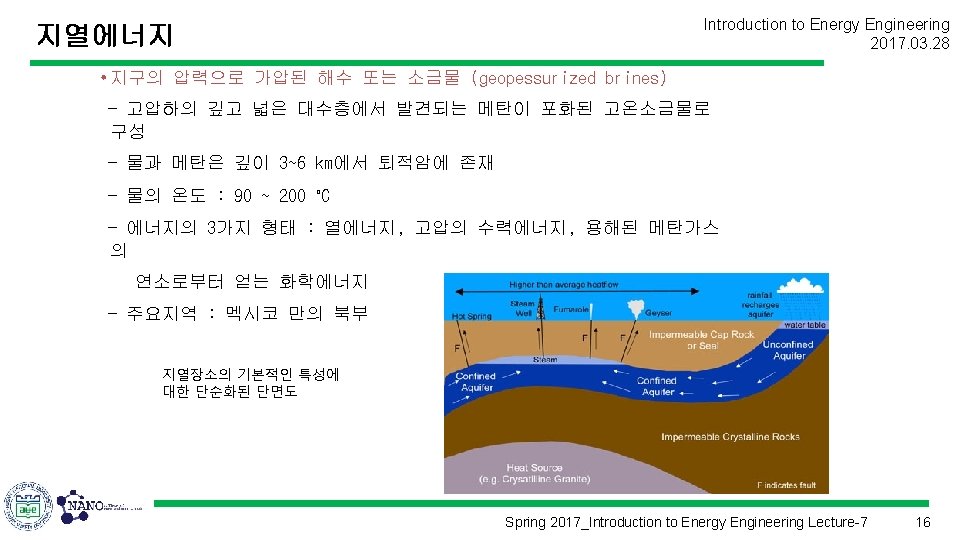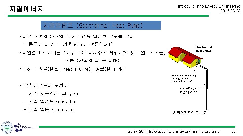 지열에너지 Introduction to Energy Engineering 2017. 03. 28 Spring 2017_Introduction to Energy Engineering Lecture-7 8