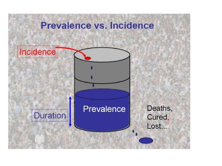 Relationship between prevalence & incidence rates An increase in prevalence rate may not necessarily be due to an increase in incidence rate, it could be due to an increase in average duration of a disease due to decrease in death and/or recovery rates. 56