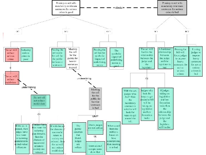Arguing about attack relations n Standards for determining defeat relations are often: n n Domain-specific Defeasible and conflicting So determining these standards is argumentation! Recently Modgil (AIJ 2009) has extended Dung’s abstract approach n Arguments can also attack relations