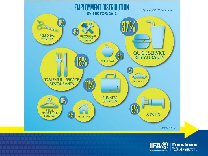 International Franchise Association • Founded in 1960, IFA is the world's oldest and largest organization representing franchising worldwide. • IFA’s Mission: to protect, enhance and promote franchising. • IFA members include franchise companies in over 300 different business sectors, individual franchisees, and businesses that provide products and services to the industry such as marketing, law, and business development.