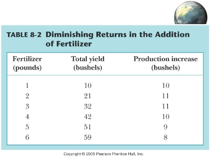 Determining Productivity • Capital investment – Technology – Equipment – Fertilizers/pesticides – dangers of overuse – Irrigation • Natural environment – Technology and capital investment lessens the importance (expands the parameters) 32