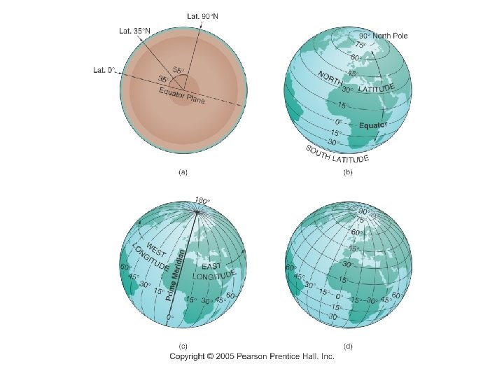 The Geographic Grid n Longitude - See Greenwich Photos & next slide ¡ ¡ ¡ n Measures distance east to west around the globe beginning at the Prime Meridian 2 most important lines of longitude: Prime Meridian & the International Date Line 0 -180 degrees East or West Latitude ¡ ¡ ¡ Location on the Earth’s surface between the equator and either the north or south pole Also called parallels 0 -90 degrees North or South