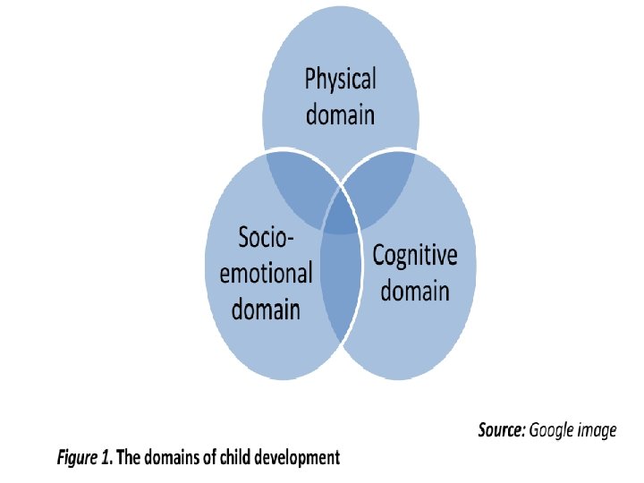 1. Domains of development The pattern of child development is generally divided into three broad categories including physical, cognitive and socio-emotional development (Berk, 2013). The physical domain involves biological changes that occur over time. These include changes in body size, proportions, appearance, motor skills, physical health etc. The cognitive domain includes changes in intellectual abilities and skills such as thinking, intelligence, creativity, attention, memory, language etc. Whereas, the socio-emotional domain highlights the processes that relate to the changes in a child's relationships with others, feelings, emotions, values, beliefs, personality etc