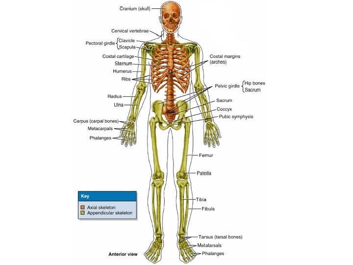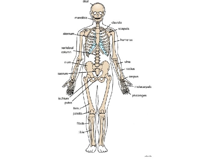 The human skeleton: • The human skeleton consists of a series of bones articulated together to form joints. • The human skeleton is divided into: 1. Axial skeleton 2. Appendicular skeleton