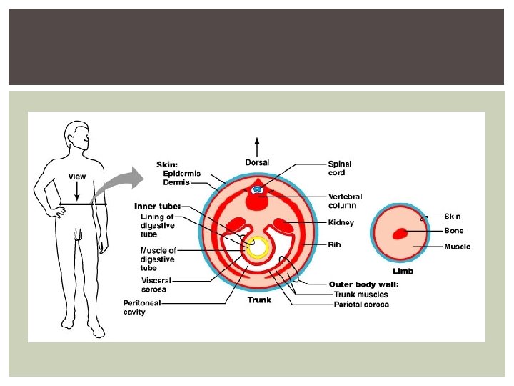 THE HUMAN BODY PLAN Humans are vertebrates and share basic features § Tube-within-a-tube § Bilateral symmetry § Dorsal hollow nerve cord § Notochord and vertebrae § Segmentation § Pharyngeal pouches