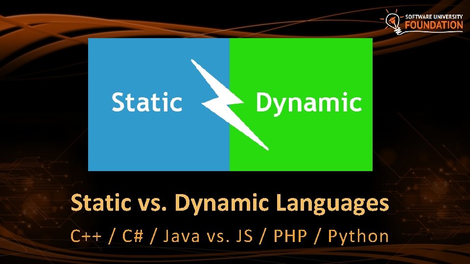 Static vs. Dynamic Languages C++ / C# / Java vs. JS / PHP / Python
