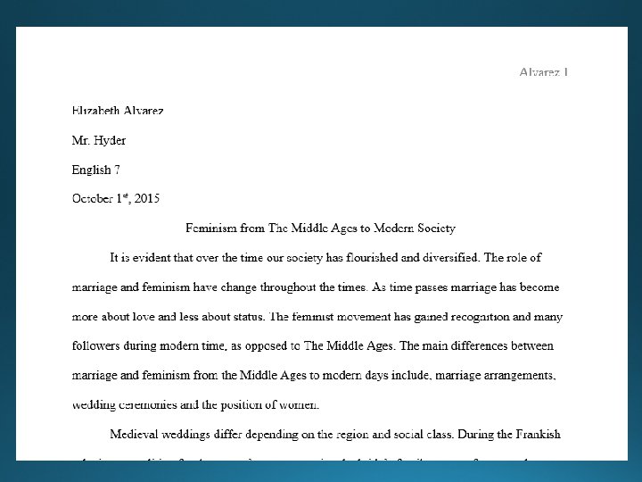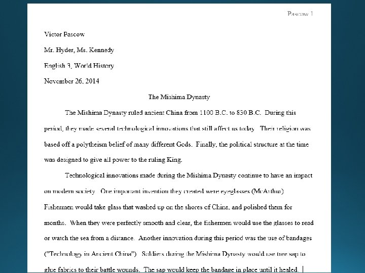 General Formatting Requirements: • Font: 12 point • Entire Paper is Times New Roman or Arial double-spaced • Heading in top left includes your name, teacher’s name, class name, and date (spelled out)