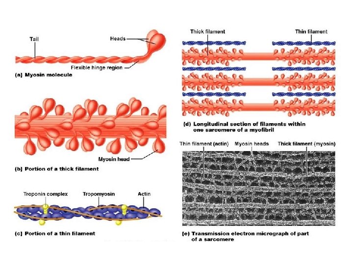 Thin Filaments • The main component is the protein actin. • Two regulatory proteins: – Tropomyosin – Troponin • Myosin-binding site (tropomyosin covers this site)