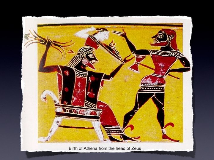The “Rebirth” of Athena • Athena jumped out of Zeus skull, full-grown and wearing battle armor. • One of the most popular and respected immortals • Athens, Greece is named for her