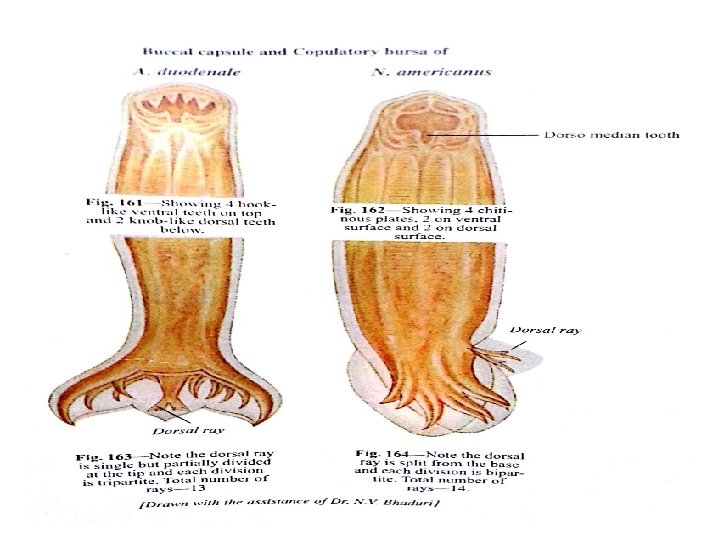 Adult worm • Elongated cylindrical or filiform in shape with both ends pointed. • Unsegmented without any appendages. • Size—less than 5 mm ( hookworm, trichinella, strngyloides) to As long as one meter(Dracunculosis) • Body bilaterally and head is radially symmetrical