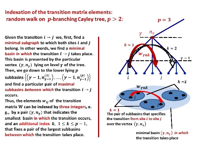 Random walk on the boundary of a Cayley tree is understood as a hierarchical skeleton of protein energy landscape. The leaves are the local energy minima, and each subtree of the Cayley tree is a basin of local minima. Master equation w 3 w 2 w 1 The branching vertexes are associated with the activation barriers for passes between the basins of local minima.
