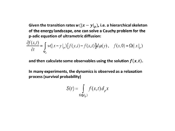 p-Adic description of ultrametric random walk The basic idea: In the basin-to-basin approximation, the distances between the protein states are ultrametric, so they can be specified by the padic numerical norm, and transition rates can be indexed by the p-adic numbers.