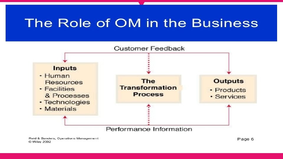 OM in Practice OM has the most diverse organisational function • Manages the transformation process • OM has many faces and names such as; • V. P. operations, Director of supply chains, Manufacturing manager • Plant manager, Quality specialists, etc. • All business functions need information from OM in order to perform their tasks
